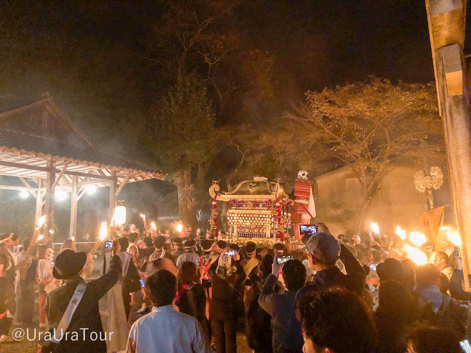 最高潮も過ぎ去り人々は帰路につき始める、午後9時過ぎ。もうひとつの「鞍馬の火祭」が始まるのをご存じでしょうか。